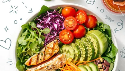 Fill your plate with whole, colorful vegetables and fruits in their natural form. Target: 3 servings of vegetables and 2 servings of fruits daily.